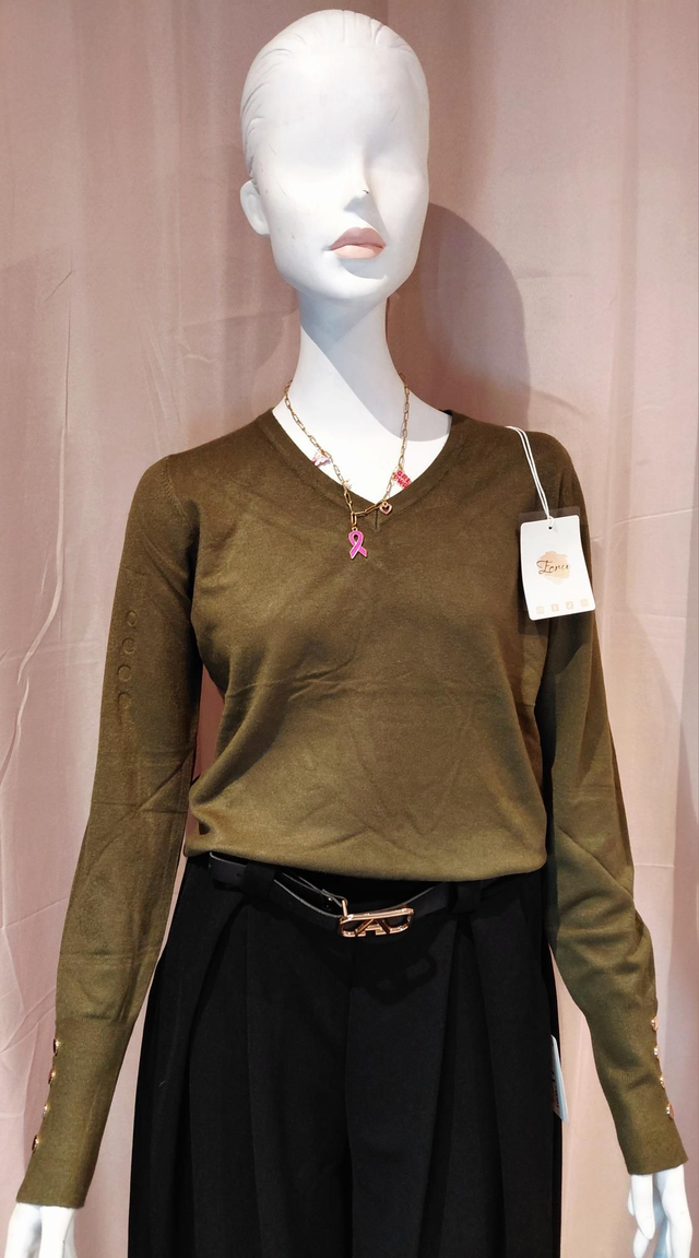 Craquez pour ce pull col V kaki, une pièce essentielle pour un look à la fois chic et décontracté. Sa coupe flatteuse avec col V met en valeur le décolleté tout en restant élégante. Confectionné dans une matière douce et confortable, il est idéal pour être porté au quotidien, en toute saison.